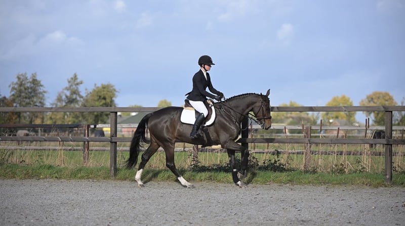 6-jährige Sportstute | Talan x Chacco Blue Tiffany ist eine sechsjährige, moderne Sportstute von Talan x Chacco Blue mit klarer Perspektive für den internationalen Springsport sowie die Vielseitigkeit. Sie verfügt über einen großen, balancierten und gut regulierbaren Galopp, den sie im Parcours sehr effizient einsetzt. Im Springen überzeugt Tiffany durch Vorsicht, Vermögen und eine konsequent ehrliche Einstellung – auch wenn die Distanz mal garnicht passt, zögert Tiffany nicht und bringt einen fehlerfrei ins Ziel. Sie hat bereits 1,10m gewonnen und ist bis 1,20 m platziert - perfekt wenn du ein Pferd suchst um gegen die Zeit zu reiten! Auch im Gelände zeigt sie viel Qualität: motiviert, mutig, clever. Bereits in den ersten Cross-Trainings und Turnieren präsentierte sie sich selbstsicher und unerschrocken. Im täglichen Umgang ist Tiffany ruhig, freundlich und unkompliziert. ✔ Aktuelle Röntgenaufnahmen von Rücken und Beinen ohne Befund ✔ Keine bekannten gesundheitlichen Einschränkungen Ein sportlich vielseitig einsetzbares Pferd, das ausschließlich in sehr gute und passende Hände abgegeben wird. 📍 Niederlande 📞 +49 176 80661258