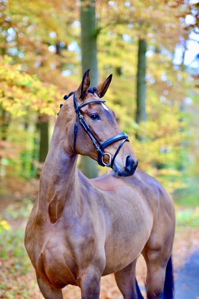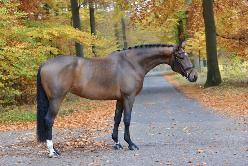 A quintessential Vitalis daughter: impressive in build, with a wonderful temperament and excellent walk, powerful canter, and top-quality hind legs, she is an absolute heartbreaker that captures hearts at first sight. Very personable and friendly in character, she enjoys hacking out and can be ridden both indoors and outdoors. Anyone who knows and loves Vitalis will surely appreciate this mare! Directly from the breeder, she has had time to mature and comes from a successful bloodline: including Flying Dance, who competed successfully up to Inter II, finished fourth at the Bundeschampionat as a three-year-old, was the top-priced lot at the 84th Oldenburg Spring Auction, and was among the top ten dressage horses at the World Championships for Young Dressage Horses at age six with Dorothee Schneider. Flying Dance has also been highly successful in small tour competitions internationally in Hagen a.T.W., Aachen, and Achleiten. From the Duellmodell lineage come the Bundessiegerstute Weltwunder, dam of the Grand Prix stallion Donnerschwee, as well as licensed stallions Rodomo, Richelshagen, Simply Virtual, and Auheim’s Don Greg, along with numerous sport horses. Velicia is a dream mare for ambitious riders! Digital radiograph certification available. She has had time to mature due to her size. She is being offered at a reduced price based on radiographic findings and is in good hands. Location: 27801 Dötlingen
