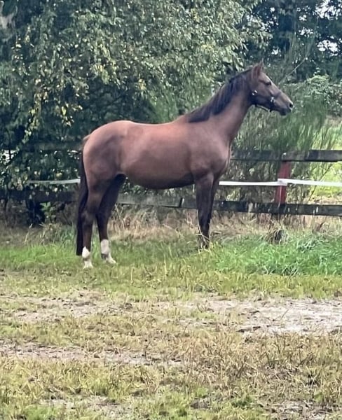 Piękna, łagodna 8-letnia klacz z hodowli Oldenburger Verband, po Vito Corleone-Sandro Classic-Rimini, o wzroście 1,65 m, z ciężkim sercem oddaję ją z prywatnej ręki w najlepsze ręce hodowców. Miała już dwa źrebięta, w tym złotą medalistyczną klacz z miotu Belantis II. Więcej informacji chętnie udzielę przez wiadomość prywatną. Wyłącznie do celów hodowlanych.