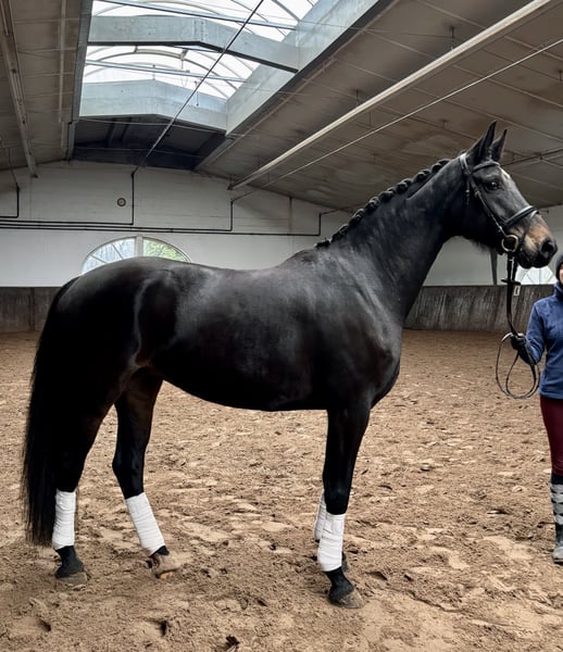 Vendemos a nuestra Felicitas, una yegua deportiva que ya ha tenido tres magníficos potros como yegua de cría. A pesar de su actividad en la reproducción, mantiene un rendimiento deportivo y, con la debida formación, puede ser utilizada como caballo de monta. La montaron por primera vez cuando era joven. En su manejo, es tranquila y fácil de tratar.