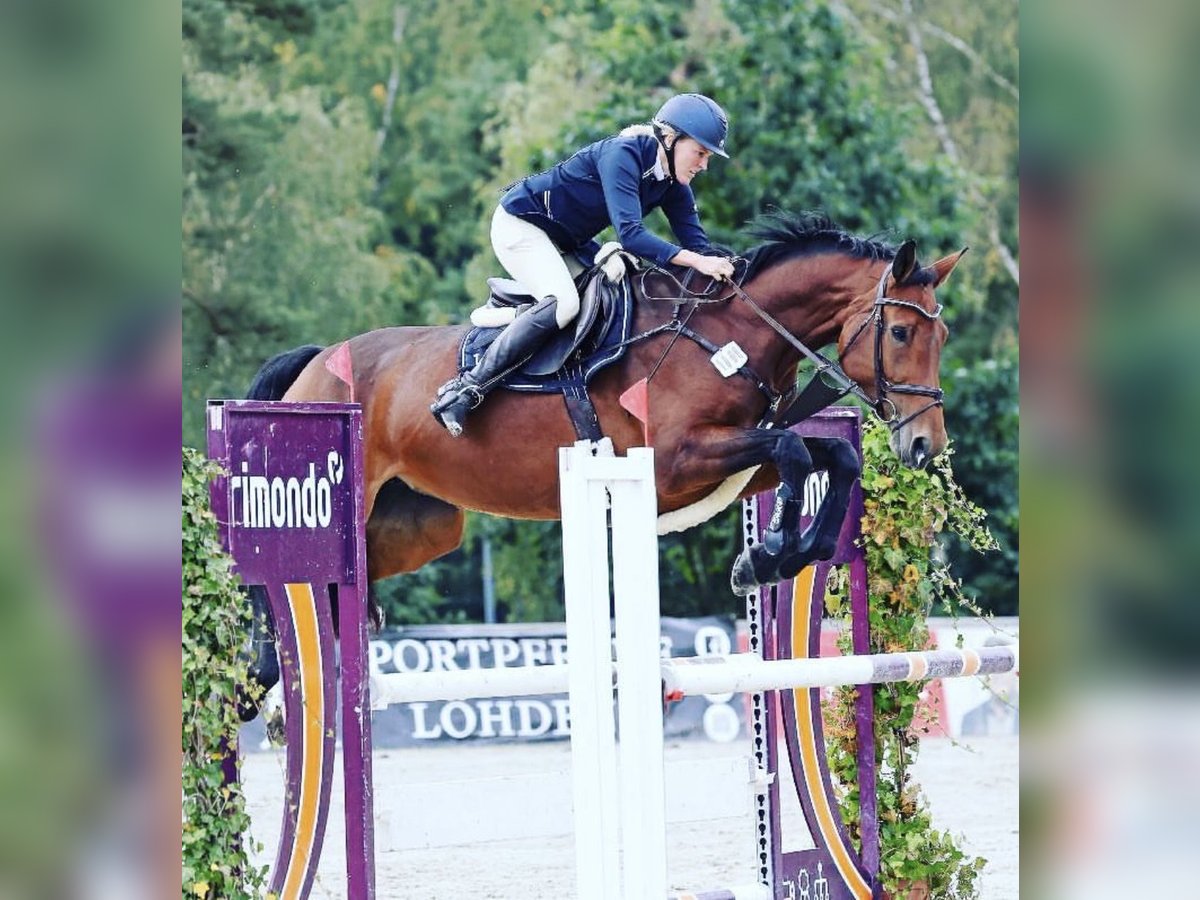 Lizzy is a versatile 9-year-old mare by Lordanos, known for her balanced temperament, making her suitable even for insecure riders and beginners with ambitions. She has only been ridden in young horse classes by experienced riders and has impressed with her consistent rhythm and fine contact, already winning show jumping classes at L level at the age of five. At six, she was able to place in an M* amateur class, and due to her reliable character, she helped a young girl transition from pony to horse, during which she achieved numerous wins and placings in E and A levels in dressage, show jumping, and trail riding. She has also gained experience in the Golden Bridle competition and at the youth training camp of the Niedersachsenmeute. A horse that always brings joy to daily work! Very uncomplicated when hacking out, traveling in the trailer, and with the farrier!
