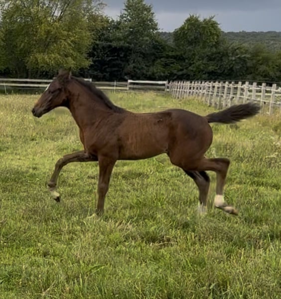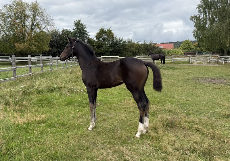 Good day, For sale is a promising filly from my hobby breeding, born on May 23, 2025. The mother was also raised on my farm. The little mare is very brave and trusting. Only the best is considered for the feeding of mare/foal. Upon transfer in autumn, she will be halter trained, regularly dewormed, and of course presented to the farrier/veterinarian. She is suitable for dressage, leisure riding, as well as for future breeding. If you are interested or need further information, please feel free to contact me. Don't miss this opportunity!