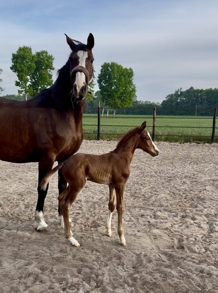**Sales Advertisement: Dreamy Oldenburg Stallion** For sale is a promising Oldenburg colt, born in May 2025. With an elegant dark chestnut coat and an estimated height of 170 cm, he is a true eye-catcher both in appearance and character. If you are looking for a promising young dressage horse that can shine both in training and at competitions, then this Oldenburg stallion is just right for you! For further information or to arrange a viewing appointment, please feel free to contact me.
