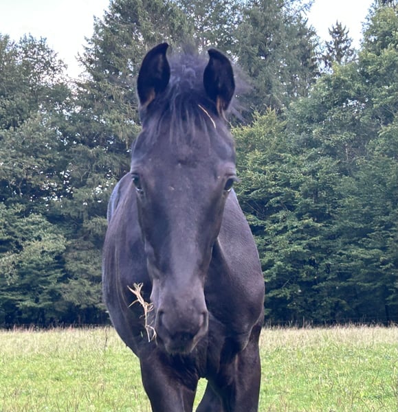 Sunny Boy ist ein sehr typvolles, korrektes, dem Menschen zugewandtes Oldenburger Hengstfohlen. Sein Vater Sky, ein Sohn des 3 fachen Weltmeisters Sezuan, aktueller Bundeschampion, ist inzwischen selbst in der schweren Klasse erfolgreich. Die Mutter Blandira, ausgestattet mit drei sehr guten GGA , ist eine Tochter des Bordeaux und mütterlicherseits von Fürst Romancier abstammend. Somit verbinden sich hier drei exzellente Dressurvererber. Ein Aufzuchtsplatz kann geboten werden.