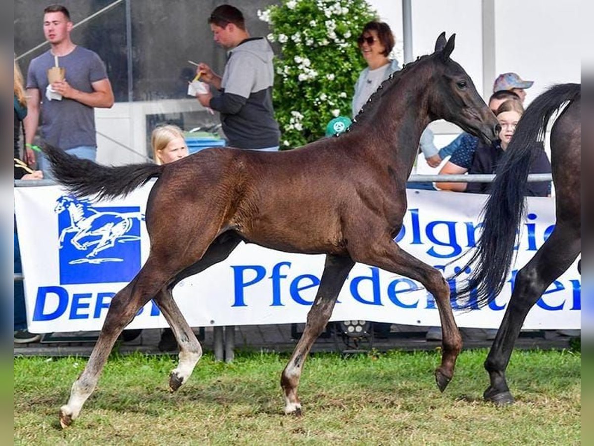Stylish, sport-type colt foal with three very good basic gaits. The foal is people-oriented, fearless, and eager to learn. The colt foal achieved an outstanding fourth place at the foal championship 2024 in Wüsting, at the regional championships North, with scores for type, movement, and overall impression (7 x 9.0 and 2 x 8.5). Information about the dam line: Sire: Federer (by Farrell from Fürstenball, dam's sire: Livaldon by Vivaldi) from the Sosath stallion station in Lemwerder. He is six years old and placed up to M-level dressage, has completed the HLP with a score of 8.12, and recently won a dressage horse M class. Further details about the sire can be found on the homepage of the Sosath stallion station. Dam: Lotta (by Fontane from Florencio, dam's sire: Rubin Royal x Placido), grandmother Luna is an elite mare. The dam, herself successful in competition, has four siblings that are highly successful in dressage up to S*** level. Seller: Heike Timmermann Schüttinger Weg 26 26969 Butjadingen Phone: Mobile: 01727815549 E-Mail: heike_timmermann@web.de