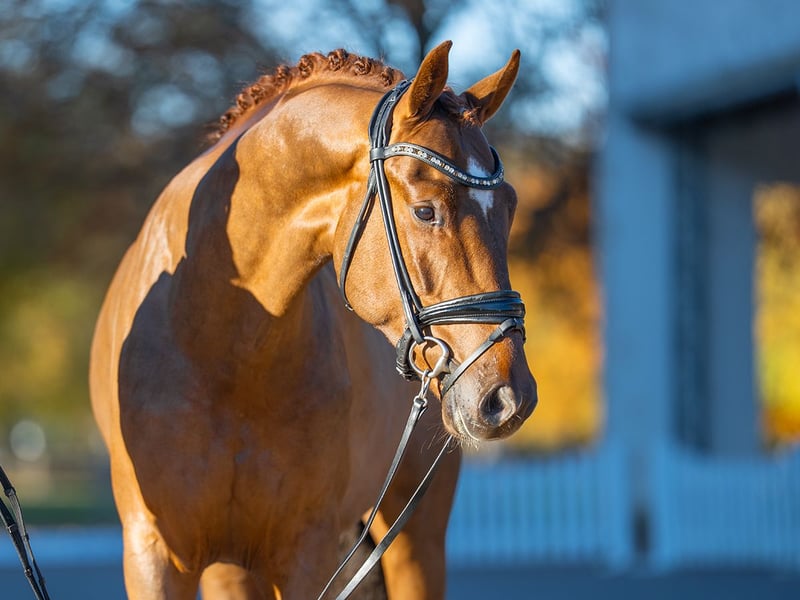 Vivaldos/Stedinger/Donnerhall Dieser schicke Dunkelfuchs mit viel Schmelz übergossen, ist nahezu das Ebenbild eines modernen Dressurpferdes. Mit extrem auffälliger Vorderbeinmechanik und viel Impuls aus der Hinterhand weiß er zu begeistern. Auch die aufwendige Galoppade mit viel Vorgriff und Durchsprung sucht ihresgleichen. Eine Dressurofferte der Spitzenklasse! Vater Vivaldos war Hannoveraner Prämienhengst, mehrfach hochdekoriert in Reitpferdeprüfungen und 5-jährig für das Bundeschampionat qualifiziert. Erfolgsdaten: V: 14TT dressurbet. Endnote 8,05; qualif. BuCha 5jähr. DPF, RPF siegr./DPF L erfolgr.; lt. FN 5 gekörte Söhne u.a. Vivaldinio (F. Ehrich) Vizechampion DSP-Championate 3jähr. Hengste M: 4 sporterfolgr. NK: Escasino (v. Escamillo) DPF A siegr./DPF L erfolgr., Filla Unabell (v. Finest) DRE A** erfolgr., Escorial Black (v. Escamillo) RPF erfolgr., Ultima (v. For Romance II) DRE L** (USA) erfolgr. MM: 1 gekörter Sohn: Spirit oft he age OLD (v. Stedinger) DPF A/DRE intern. GP siegr./DPF M/DRE intern. GP CDI5*-Niveau erfolgr.; 6 sporterfolgr. NK u.a.: Sinatra M (v. Stedinger) DRE M** siegr./DPF L/DRE IM I erfolgr., Una Bailarina (v. Stedinger) DPF L/DRE S* siegr./DPF M/DRE IM I erfolgr., Ulani M (v. Antango) DPF A/DRE M* siegr./DPF L/DRE M** erfolgr., San Donero (v. Stedinger) DPF L erfolgr., Starbucks M (v. Stedinger) DRE A* erfolgr. MMM: 6 sporterfolgr. NK: Scaramouche 36 (v. Sandro Hit) DRE L** siegr./DPF M/DRE M* erfolgr., Ce la vie 2 (v. Chico’s Boy) SPR 105cm siegr./DRE A**/SPF 115cm/SPR 115cm/GEV A erfolgr., Uzuri (v. Zonik) DPF L/DRE L* erfolgr., Corofino 15 (v. Chico’s Boy) SPR 95cm siegr./SPF 105cm/SPR 105cm erfolgr., Donnalittchen 3 (v. Donnerschlag) DRE A*/SPR 105cm erfolgr., Sirius 195 (v. Samarant) RPF siegr./DPF A erfolgr. Oldenburger Stutenstamm 128 gekörte Hengste: Diego de Silva (v. Don Olymbrio L), Radcliffe (v. Rivero II) DRE S* erfolgr., Delfine Dynamic (v. Danciano) RPF siegr./Landes- und Süddeutscher Champion 3jähr. RPF-Hengste, N.N. (v. Monte Bellini; Sport: Monte Kahlo), Gratino (v. Grannus), Sensation (v. Sir Heinrich), Veneno HC (v. Vitalis), It’s Otto (v. Etoulon VDL), Richard Löwenherz (v. Rubinstein I) DRE intern. IM I und Europameisterschaft Junge Reiter erfolgr., Copperfield (v. Classiker), Sir Caramello (v. Sir Donnerhall I) DRE intern. GP erfolgr. erfolgr. Springpferde: Seneca de Panoly (v. Calvaro Z) SPR intern. 150cm erfolgr., Katre d’Elite (v. Paladin des Ifs) SPR intern. 150cm erfolgr., Mat’s up duPlessis (v. Verdi) SPR intern. 160cm erfolgr., Lubie du Plessis (v. Le Tot de Semilly) SPR intern. 145cm erfolgr., Sandro Star 5 (v. Sandro Hit) SPR intern. 145cm erfolgr., Charlon (v. Chalan) SPR intern. 145cm erfolgr., Cuba Libre (v. Cornet Obolensky) SPR intern. 140cm erfolgr., Call on me 6 (v. Check In) SPR intern. 140cm erfolgr., Elixer (v. Zacharov TN) SPR intern. 145cm erfolgr., Quirinia (v. Quaid I) SPR intern. 145cm erfolgr. erfolgr. Dressurpferde: Diaboletta (v. Diamond Hit) DRE S* erfolgr., Don Etoile F.S. (v. Don Diamond) DRE IM I erfolgr., Pandora 183 (v. Rivero II) DRE IM I DRE intern. Junge Reiter-Tour erfolgr., Rubina 152 (v. Rubirando) DRE IM I erfolgr., Joy of Jazz (v. Jazz) DRE S* erfolgr., Benvenuto 11 (v. Boston (NLD)) DRE IM I erfolgr., Big Bang 4 (v. Boston (NLD)) DRE IM I erfolgr., Sir Rubin 3 (v. Sir Donnerhall I) DRE S*/DRE intern. Children-Tour erfolgr., Hoejgaards Dexter (v. Dolany) DRE intern. GP (CDIU25) erfolgr. https://horse24.com/de/auctions/details/5-mecklenburger-koertage-online-auktion-454 Ansprechpartner Jannes Sonnenberg 01705417431