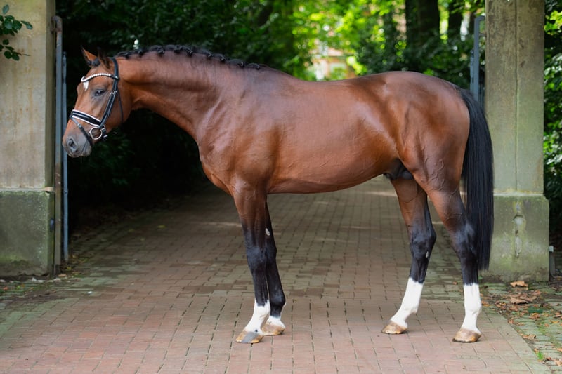 Definitely the best horse of his year! Beautiful, typey and framy stallion prospect with extremely interesting bloodlines for dressage and show jumping alike! He has enough movement potential and an incredible amount of quality at the jump! He is also a typical Cafe au lait offspring in terms of character: fearless, well-balanced, compatible and incredibly docile. Born early, he is already well developed. He was x-rayed at the age of 18 months without any findings. From next year he will be prepared for licensing. The equally high quality full sister has already been sold, another full sister from this year with enormous movement can still be viewed on site. The sire Cafe au lait, winner of his licensing, HLP winner and BuCha finalist, was himself victorious in the advanced classes and has made a name for himself in recent years as a double sire with top offspring. Cafe's Casimir" (Cafe au lait x Calido x Grannus) was the celebrated top price at the Oldenburg Elite Auction, is a serial winner in advanced (S) level dressage at a young age and has won Intermediaire I internationally. Kasselmann's mare Cafe's Caletta (Cafe au lait x Calato) has also already placed in advanced (S) level dressage and won Grand Prix internationally. Cafe's Matts (Cafe au lait x Don Frederico) was the second most expensive dressage horse at the Oldenburg Summer Mixed Sales. Other young horses out of jumping-oriented broodmares have already been placed several times in tests for young dressage horses at advanced (A) to medium (M) level and are remarkably strong-moving and clear-headed. There is no doubt that the Cafe au lait offspring are convincing in show jumping up to advanced level (e.g. from our breed Cafe's Champus: licensed, Vice World Champion of Young Horses, Cafe Junior: licensed, internationally successful in Saudi Arabia, Cafe's Columbo: licensed in France). Stationed at Paul Schockemöhle, Cafe au lait has already sired a number of internationally successful show jumpers, including "Royce", victorious in the FEI CSI5* $500,000 Rolex Grand Prix Wellington. Cafe au lait himself was a Bundeschampionat finalist under Philipp Weishaupt and has been successful up to advanced (S***) level in show jumping, but also has three spectacular GGAs and has been trained to advanced (S) level in dressage. The dam's sire of this promising foal, "De Kooning", has already produced Grand Prix horses such as Dalou Shan despite very limited breeding and, as a direct son of the unique Donnerhall, has a lot of Holsteiner blood on his dam's side. Despite a small number of offspring, he has already produced a number of licensed offspring, including a premium stallion in Neustadt Dosse, the dressage winner in Munich-Riem and another premium stallion! Our foals receive daily mineral feed and foal starter, regular EQUISTRO Haemolytan and Ipaligo Foal, worming and farrier are of course also a matter of course. The dams also receive special mare feed throughout their pregnancy, daily juice feed and linseed oil, as well as hay ad libitum. This ensures that our offspring are always in the best of health. Further foals and offspring from our own breeding on request. There are always a few broodmares in foal for sale. Video requests etc. only possible in advance via WhatsApp!