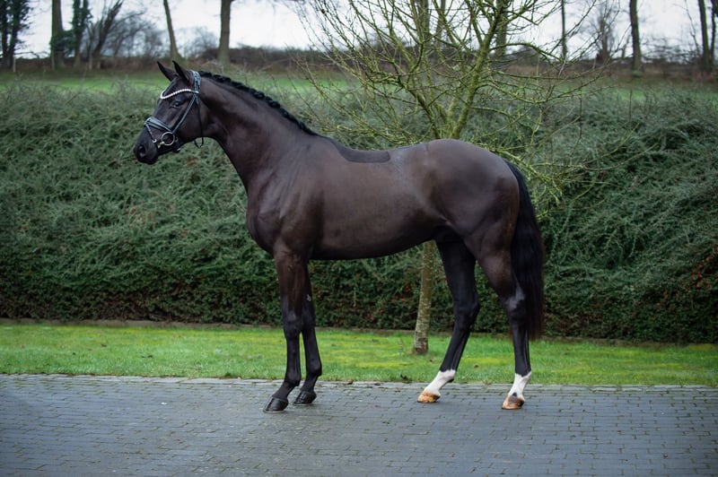 by Morricone I – Laurentio Approved for Oldenburg, further details upon request WFFS-free X-ray protocol available at www.hof-thelker.de Breeder: Ralf Toellner Stud fee for fresh semen: €300 at insemination + €500 upon pregnancy (plus VAT) Young breeder discount! We offer a 40% discount to breeders up to 25 years old! For more information, contact Christian Thelker +49 175-854 3529 With Mai Tai, we present a noble young stallion with a lot of charm and nobility. The first impressions under the rider give great hope, especially his active hind leg and his relaxed walk are impressive. However, we are most fascinated by his wonderful character and exemplary work ethic. Morricone I – the father His father, Morricone I, was not only the Oldenburg champion stallion and main premium winner but also boasts victories up to Grand Prix in sport. Morricone I uniquely combines the breeding heroes Millennium, Rubin-Royal, and De Niro with type strength, willingness to perform, and Grand Prix potential. With over 30 successful S-level dressage horses and 24 licensed sons, he impresses in breeding as well. Viola – the mother On the maternal side, Mai Tai also impresses with performance-tested relatives. His full brother "Marokko" was the most successful 6-year-old dressage horse in the USA under Hope Beerling and was already able to win international young horse tests at the age of 7. Half-brother Dharkan (by De Niro) is multiple Grand Prix winner under Léonie Guerra for Liechtenstein. Mother Viola is also a half-sister to the licensed Dolando and the S-level dressage horse Doktor Haus (by Don Larino). Grandmother Violetta is also the grandmother of Viva Waldi, who is successful at Grand Prix level under Christine Eglinski. Through Barsoi xx and Vollkorn xx in the further pedigree, Mai Tai has a thoroughbred percentage of over 45%!