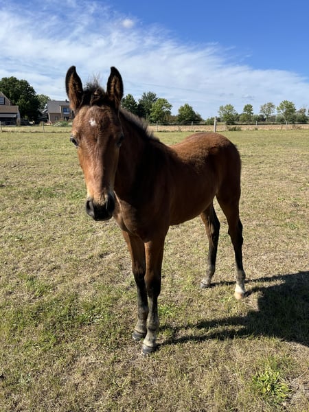 For sale is this charming, typy Diamantenglanz colt, born at the end of May 2025. He has an elastic movement and a good walk. The Warendorfer stallion Diamantenglanz is currently in training with Helen Langenhagenberg. He was licensed in 2021 in Vechta and has already won multiple young horse competitions. The mother, Look and Pay (1.65m), has an excellent character and is always 100% reliable. She is placed in dressage at S level and has competed up to S** level. Her mother, Lasenja, has been active internationally in show jumping at 1.50m. The colt is wormed and is already familiar with a halter. Loading onto a trailer was no problem, and he did great with it. The colt can be viewed at any time.