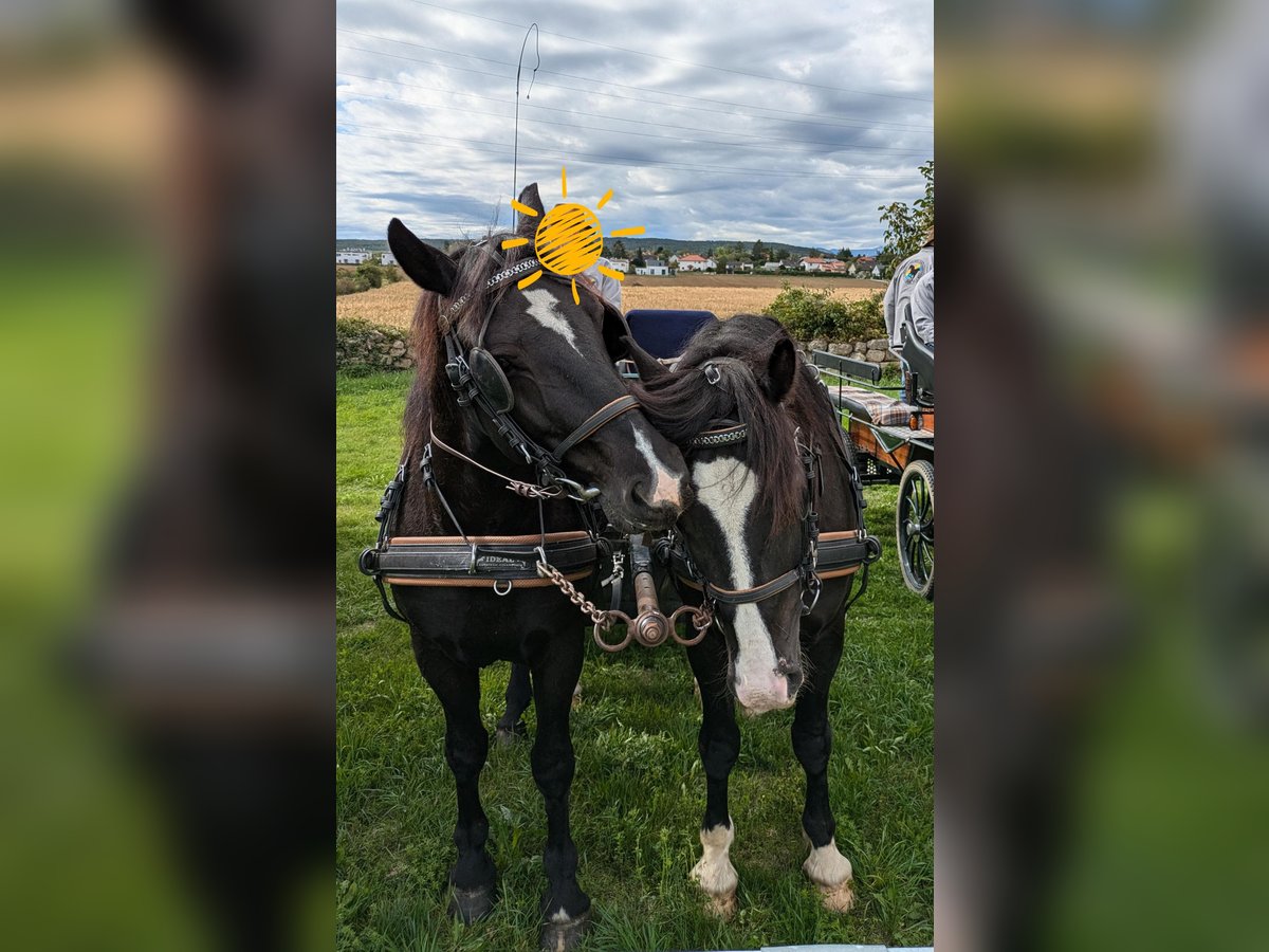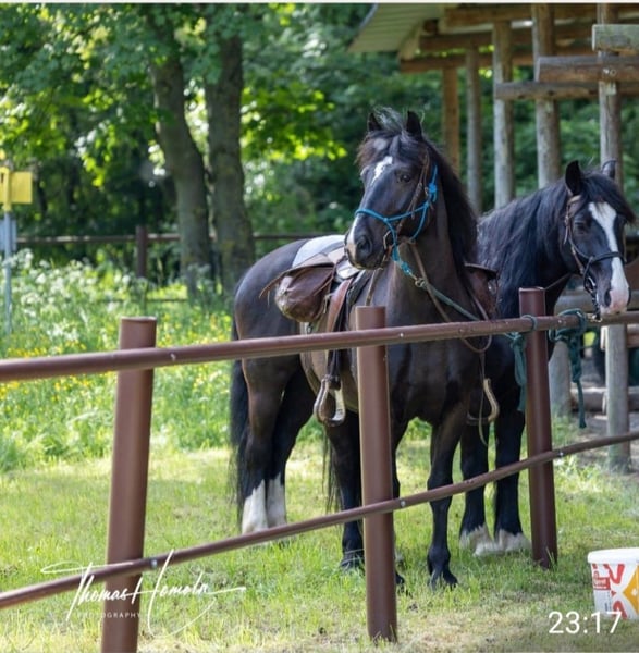 Zwei tolle Pferde (Noniusmix) abzugeben. Beide sind sowohl zu reiten als auch zu fahren – ein- oder zweispännig. Sie gehen flott und zügig, sind trittsicher und standen immer im Offenstall. Sehr robust und unkompliziert. Woodie ist der Schmuser: ruhig, brav und zuverlässig. Er kann auch von unerfahrenen Reitern geritten werden, Kinder können problemlos auf ihm sitzen. Joker ist etwas temperamentvoller und braucht eine ruhige, erfahrene Hand. Beide sind ehrlich im Umgang und machen viel Freude