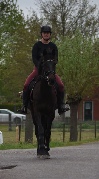 Howi, offiziell getauft mit dem ungewöhnlichen Namen: Howimeturmother, ist ein Schatz von einem Pferd. Früher wurde er bereits im Dressur- und Freizeitbereich eingesetzt und wird bei uns mit viel Freude geritten. Er ist hier sehr kooperativ, sogar ein weniger erfahrener Reiter kann mit ihm reiten. Er hat ein äußerst liebes Wesen. Optisch erinnert Howi stark an einen barocken Friesen. Vor acht Jahren haben wir ihn an ältere Menschen verkauft, die einmal von Feuerwerk in der Nähe der Stallung erschreckt wurden. Jetzt bei uns hat er seine Ruhe wiedergefunden, sowohl im Stall als auch auf der Weide. Sogar ein Anfänger-Kind hat bereits wieder auf ihm geritten. Er besitzt einen Pass mit Stammbaum von From Above x Wall Street Banker. Howi wurde am 16.04.2014 geboren und ist ca. 1,61 m groß. Aktuell liegt ein aktuelles Gesundheits- und Korrekturrapport inklusive Blutprobe vor. Preis: 3.950 € inklusive Markenzäumung.