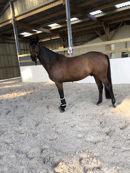 Hongre de 11 ans, potentiel amateur élite, régulièrement classé 115/120. Gentil au quotidien, pratique pour tout.