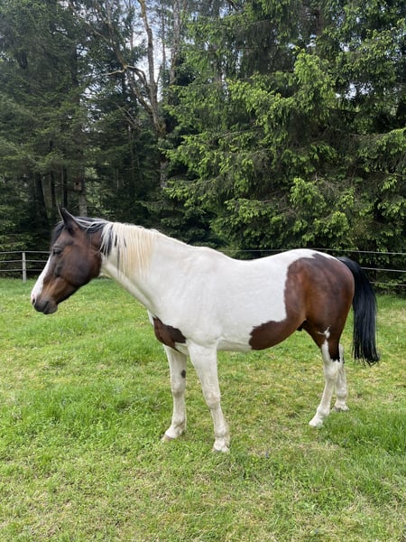 We are looking for a forever home for an Hungarian Schecke gelding. Not suitable for beginners! He requires an experienced rider. He is insecure and sensitive. He has been ridden little over the past three years and not at all since May. Unfortunately, we do not match riding-wise. Therefore, he would need to be retrained. We have no information about his past. On the ground, he is uncomplicated and well-behaved with the farrier and veterinarian. Currently barefoot. He gets along without issues in our gelding herd and tends to be dominant. We wish for a loving home where someone can provide him with the security he needs, even in the saddle. Or simply as an easy-going companion horse. Place before price.
