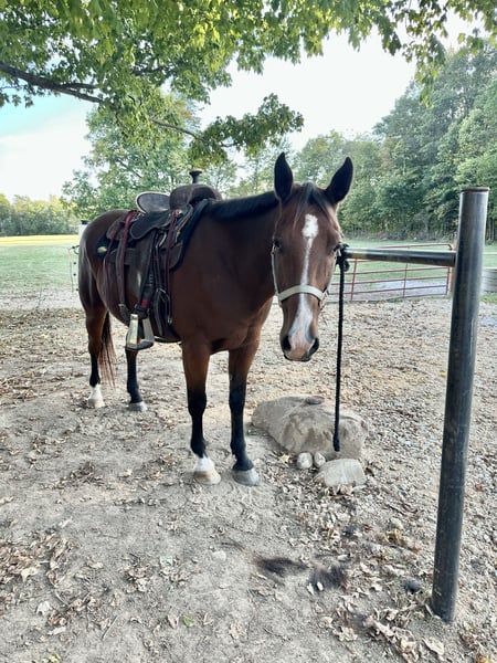 Easy to get along with & broke. Camp trail horse before I got him. I used him for fun and have taught him some arena work. His gaits are floaty and he enjoys speed but settles down easily. Arlo is fun & sweet. No vices! Advanced beginner/intermediate that wants a fun day or maybe contesting will not be disappointed!