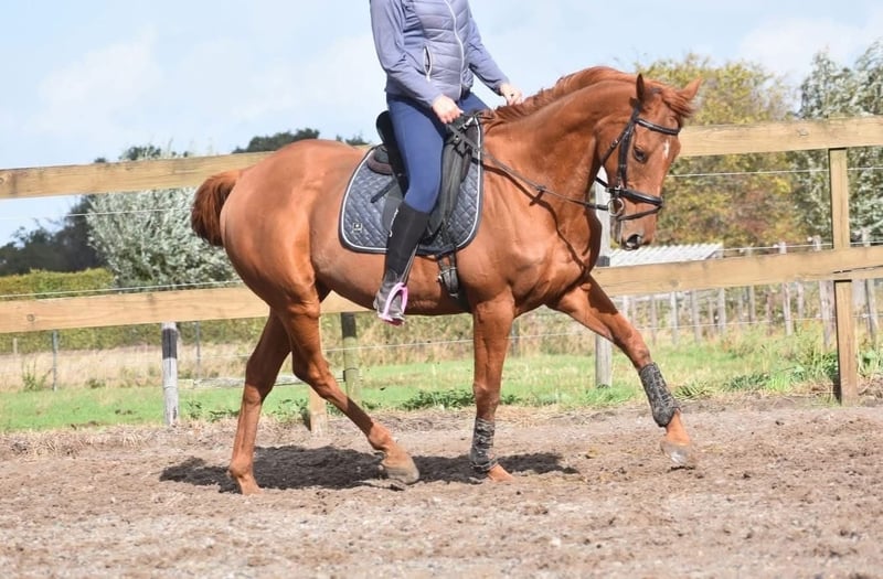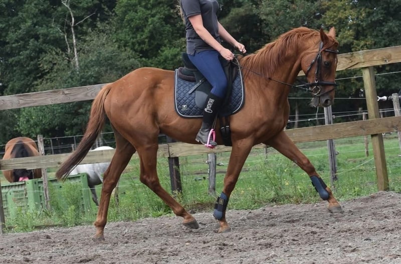 Oh, ‘Herewego’ is the official given name of this incredibly sweet gelding. Because he is so gentle that you could almost eat him, and since he could benefit from a few more cookies to become a bit more filled out, we call him Cookie. Cookie has been a sweetheart of a horse from the very beginning. He is well-behaved in handling, in the trailer, on the road, in the stable, and in the pasture. He can be ridden here by beginner riders and has enough scope to also challenge more advanced riders. He stands approximately 16.1 hh. No stable vices. Cookie has a full pedigree of Medaaly x Masamba. He was born on April 18, 2009. He comes with a very recent health and suitability inspection report, including blood tests, which he has passed. Price: €4,450, including a brand saddle and saddle pad.