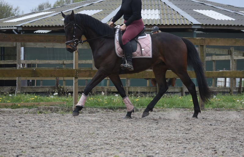 Wunderschöner, äußerst brave und korrekt ausgebildeter Reitpferd Dieser im französischen Blut stehende Wallach heißt Daytona Diamond. Sein Vorbesitzer hat ihn uns geschenkt. Er ist wirklich ein Augenweide – sowohl von innen als auch von außen! Er ist ein von Natur aus galoppierfreudiges Pferd. Er hat nie im Rennsport gearbeitet und war nie auf einer Rennbahn. Er besitzt drei sehr großzügige, gut getragene Gangarten. Er ist für verschiedene Disziplinen geeignet. Unserer Meinung nach ist er auch brav genug für die Freizeitreiterei! Bei unserer Ankunft konnten wir sofort auf ihm losreiten. Er ist 4 Jahre alt, ca. 1,65 m groß und besitzt eine Vollblutstammbaum: Cloth of Stars x Montjeu x Eagle Eyed. Diamond ist ein echtes, prachtvolles Paradepferd, das auf einen liebevollen Besitzer wartet, mit dem er eine großartige Zukunft haben wird! Sein Vorbesitzer möchte gerne den Kontakt zu einem neuen Besitzer halten und schreibt: „Diamond ist lernwillig, lieb, ein Schmusepferd, menschen- und pferdebezogen, sozial und brav. Er liebt Putzen und Aufmerksamkeit. Der Grund für den Verkauf ist, dass vier Pferde doch zu viel sind. Er verdient mehr Aufmerksamkeit und Bewegung.“ Er ist beim Ausritt im Gelände hier äußerst brav. Allein verlässt er den Hof problemlos und geht ganz gelassen auf die Straße. Vor Kurzem wurde er vom Tierarzt behandelt, besitzt einen aktuellen Befundbericht. Preis: 6.450 € inkl. Markenreitstiefel und kompletter Trense