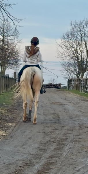 Krimi ist ein junger braver Wallach, der gerade angeritten ist und seine ersten Sprünge unter dem Sattel macht. Er ist ganz unkompliziert im handling und lernt schnell. Er ist barhuf und steht tagsüber in der Gruppe draußen.