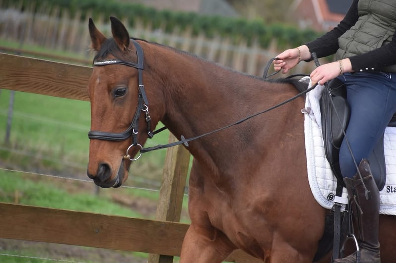 Knappe, vrolijke, 6 jarige ruin Hier is Yamas, een 6 -jarige ruin met de afstamming Anjaal x Creese. Met zijn sprekende bruine ogen en charmante uitstraling weet hij direct harten te veroveren. Hij heeft een mooi familiemaatje met zijn ca 158 m hoogte. Yamas is een paard met een fijn, nuchter karakter. Hij blijft hier rustig in nieuwe situaties en is niet snel onder de indruk van zijn omgeving. Daarbij is hij niet overdreven voorwaarts, wat zorgt voor een veilig en betrouwbaar gevoel in het zadel. Hij is in bezit van een keuringsrapport inclusief bloedafname, waarbij hij is goedgekeurd voor de sport met perfecte buigproeven! In de omgang, het verkeer, de trailer en in de kudde is Yamas hier nuchter en in de wei en op stal erg makkelijk. € 3950,- Incl. zadel en compleet hoofdstel