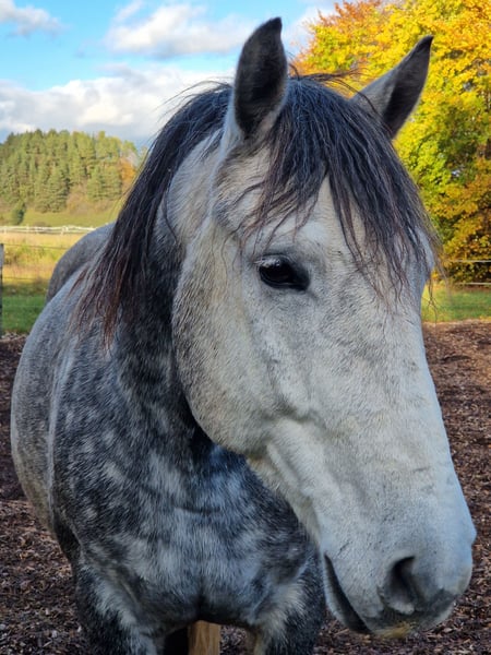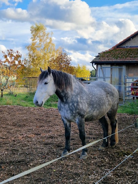 Eddie ist ein 8-jähriger, 158 cm großer Kaltblut-Mix, der bequem zu reiten ist und durch seine tollen Gänge besticht. Er ist westerngeritten und genoss einen schonenden, gründlichen Profiberitt sowie regelmäßigen Korrekturberitt. Durch die Teilnahme an Kursen bei namhaften Trainern ist er ein Pferd, das fein an den Hilfen steht und besonders an Trailaufgaben sowie neugieriger Bodenarbeit große Freude hat. Eddie ist intelligent und in den richtigen Händen arbeitswillig, aber kein Anfänger- oder Kinderpferd. Er braucht eine klare, erfahrene Führung und jemanden, der ihn nicht als „Kuscheltier“, sondern als Partner auf Augenhöhe versteht. Unter der Ganasche gekrault zu werden, liebt er dennoch sehr! Leider bedeuten Offen- oder Aktivställe für ihn Stress. Wir suchen für ihn eine große, ruhige Paddockbox ohne viel Durchgangsverkehr mit täglichem Koppelgang in einer kleinen, beständigen Herde. Eddie hat einen vollständig ausgeheilten Sehnenschaden und ist im Freizeitbereich voll belastbar. Aufgrund dessen wird er deutlich unter Wert verkauft – uns ist der passende Platz und ein pferdegerechtes Management (langes Aufwärmen, guter Boden) wichtiger als der Preis. Preis: 5.800 € (Verhandlungsbasis bei Bestplatz) Kein Verkauf an Händler oder Reitschulen! Ein vorheriges Kennenlernen und mehrmaliges Probereiten ist ausdrücklich erwünscht, um sicherzustellen, dass die Chemie auf beiden Seiten stimmt. Falls Sie einen feinen Freizeitpartner suchen und Eddie das passende Zuhause bieten können, freuen wir uns auf Ihre Nachricht mit einer kurzen Beschreibung, wie er bei Ihnen leben würde.