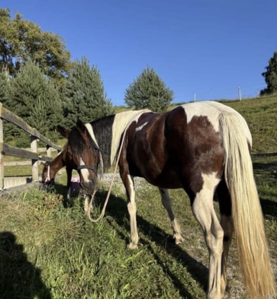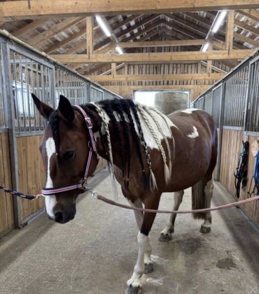 Pony-Mix-Stute 💕Herzenspferd zum Weiterausbilden Curly Sue wurde bereits von jugendlichen Kindern geritten, gemütliche Ausritte. Geht am langen Zügel und ist sehr fein. Liebt Spaziergänge, kennt Bodenarbeit, liebt es geputzt und betüdelt zu werden. Sehr menschenbezogen und verschmust. Steht jedoch leider seit etwa einem Jahr, daher ist sie (zur Zeit) kein Anfängerpferd und benötigt wieder Training und weitere Ausbildung. Größe 1,36m 11 Jahre Barhuf Kein Pferd für einen Reitbetrieb, sie ist ein Freizeitpferd und sucht „ihren“ Menschen. Wird daher nur an Privat abgegeben. Sie steht derzeit in einer gemischten Herde, kennt Offenstallhaltung sowie Boxenhaltung. In der Herde ist sie rangniedrig. Steht in Oberösterreich (Bezirk Freistadt) 37🥕🥕 Vhb (Platz vor Preis) 0650/340 3366 (gerne per WhatsApp oder SMS, da ich telefonisch nicht immer erreichbar bin)