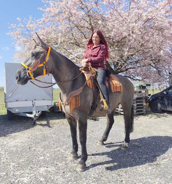 Wunderschöne Grullo-Stute – brav, zuverlässig & angenehm zu reiten Name: Malwina Alter: 11 Jahre Geschlecht: Stute Stockmaß: ca. 1,64 m Farbe: Grullo (Sonderfarbe) Preis: 7500,- AKU: vorhanden Beschreibung: Malwina ist eine wunderschöne, kräftige Stute in der Sonderfarbe Grullo. Sie überzeugt nicht nur optisch, sondern vor allem durch ihr ausgeglichenes und freundliches Wesen. Im täglichen Umgang ist sie absolut brav und unkompliziert. Putzen, Führen und Satteln verlaufen ruhig und problemlos – sie ist zuverlässig und angenehm im Handling. Auch unter dem Sattel zeigt sich Malwina von ihrer besten Seite. Sie ist super zu reiten, fein an den Hilfen und vermittelt ihrem Reiter ein sicheres und angenehmes Gefühl. Ihr ausgeglichenes Temperament macht sie zu einer tollen Partnerin für entspannte Ausritte und den Freizeitbereich. Geeignet für: Freizeitreiter, Wiedereinsteiger oder Reiter, die ein zuverlässiges und gutmütiges Pferd suchen. Pflege & Betreuung: – Regelmäßig entwurmt – Schmied gepflegt – Tierärztlich betreut Zusatzangebote: Sättel, Trensen und weiteres Zubehör erhältlich Service: – Transport kann organisiert werden – 3 Monate Umtauschrecht Proberitt: – 35 € (jedes weitere Pferd 25 €) – Wird beim Kauf am selben Tag angerechnet Preisnachlass bei sofortiger Mitnahme oder Transport am gleichen Tag: – Kategorie 1: 100 € – Kategorie 2 (ab 5.000 €): 250 € Telefon: 0171 – 4001968 Erreichbarkeit: täglich von 8–20 Uhr Keine E-Mail oder WhatsApp Alle Angaben ohne Gewähr