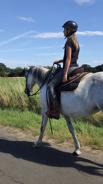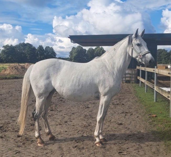 Schweren Herzens: Liebevolle 147cm große Trabermix-Stute sucht neues Zuhause Aus zeitlichen Gründen suche ich für meine 17-jährige Trabermix-Stute ein neues, passendes Zuhause – eine Entscheidung, die mir alles andere als leichtfällt. Sie ist eine sehr liebe, sensible Stute, die eine enge Bindung zu „ihrem“ Menschen aufbaut. Wer ihr Vertrauen gewinnt, wird jeden Tag aufs Neue begrüßt und bekommt ein unglaublich treues Pferd an seine Seite. Sie ist kein reines Anfängerpferd, da sie an manchen Tagen durchaus „Go“ hat und fein geritten werden möchte. Zudem ist sie kein Gewichtsträger. Traberbedingt zeigt sie eine Gangveranlagung. Sie ist aber auch für ein junges Mädchen geeignet, sofern Reiterfahrung, ein gutes Gefühl und ein ruhiger Umgang vorhanden sind. Als Freizeitpferd fühlt sie sich am wohlsten: • Sie geht gern allein ins Gelände und zeigt sich dort zuverlässig • Hat Freude an Platzarbeit, Bodenarbeit und auch an kleinen Sprüngen • Turniere sind nichts für sie, dort wird sie eher nervös Im Umgang ist sie absolut angenehm: • Verladefromm – geht lieb auf den Hänger • Brav beim Schmied und im täglichen Handling unkompliziert Sie kennt sowohl Boxenhaltung als auch Offenstall. Im Offenstall sollte jedoch darauf geachtet werden, dass sie ausreichend Futter bekommt, da sie eher rangniedrig ist. Im Sommer ist auch 24/7 Weidegang problemlos möglich. Ein passender Sattel kann bei Interesse dazu erworben werden. Ich wünsche mir für sie einen Menschen mit Herz, Zeit und Feingefühl, der ihr gerecht wird und ihr ein dauerhaftes Zuhause bietet. ! Platz vor Preis ! Probereiten ist gegen eine Gebühr von 20 € möglich, welche beim Kauf verrechnet wird. Dies dient dazu, reine „Hobbyreiter“ zu vermeiden. Bei ernsthaftem Interesse freue ich mich über eine Nachricht/Anruf 015151440456