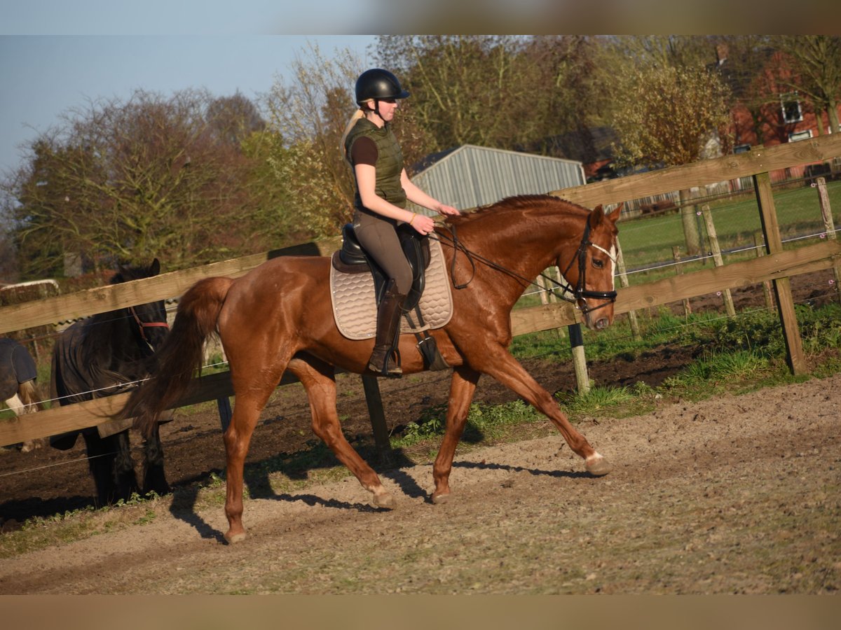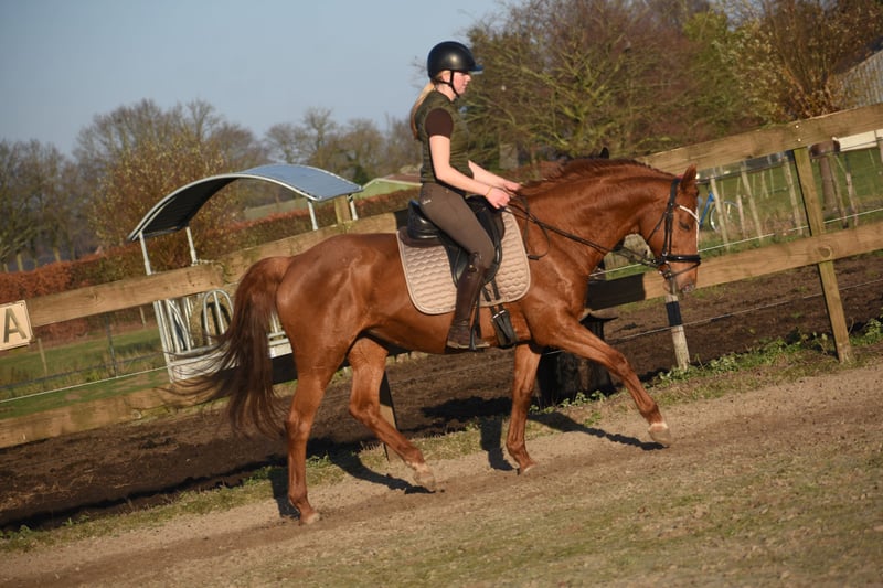 Dana is truly a picture-perfect mare. She has a stunning golden chestnut coat, a beautiful build, and an expressive head. Her previous owners mainly rode her outdoors, but she has been riding beautifully in the arena right from the start. Born in 2007, she looks fantastic and certainly does not appear her age. Her experience makes her a safe choice for a beginner or anyone who simply appreciates an easy-going horse. Dana stands approximately 16.0 hands high. She has a solid pedigree: Dow Jones Courcel (Arabian) x Shardari x Little Credit. It’s quite possible she could foal again if you decide to breed her. Did you know that mares can have foals well into old age? They do not experience menopause like humans. In any case, Dana is a perfect companion: sweet, social, easy to handle, trailer- and traffic-safe with us and previously. €3,950 including brand saddle and complete bridle.