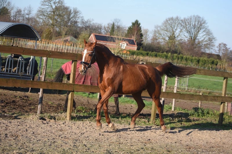 Wunderschöne, anfängersichere und erfahrene Reitpferdestute Dana ist wirklich ein Blickfang. Sie hat eine wunderschöne goldene Fuchsfärbung, eine elegante Konstitution und ein ansprechendes Köpfchen. Ihre Vorbesitzer haben hauptsächlich draußen mit ihr geritten. Dennoch hat sie hier von Anfang an im Dressurviereck sehr brav und zuverlässig gearbeitet. Sie wurde 2007 geboren, sieht aber top aus – man würde ihr dieses Alter auf keinen Fall ansehen. Dank ihrer Erfahrung ist sie ideal, um einen Reitanfänger sicher zu begleiten, oder auch für jemanden, der einfach ein unkompliziertes Pferd sucht. Dana ist ca. 1,60 m groß. Sie besitzt eine gute Abstammung: Dow Jones Courcel (AP) x Shardari x Little Credit. Es ist also durchaus möglich, dass sie noch ein Fohlen bekommt, falls man noch ein weiteres Nachwuchspferd bei ihr zeugen möchte. Wusstest du, dass Pferde bis ins hohe Alter trächtig werden können? Sie haben keine Menopause wie wir Menschen. Auf jeden Fall ist Dana eine perfekte Partnerin. Liebenswert, sozial, unkompliziert, bei uns und vorher auch trensport- und verkehrssicher. Preis: 3.950 € inklusive Markenreitkappe und kompletter Trense