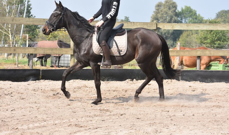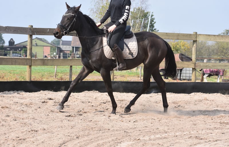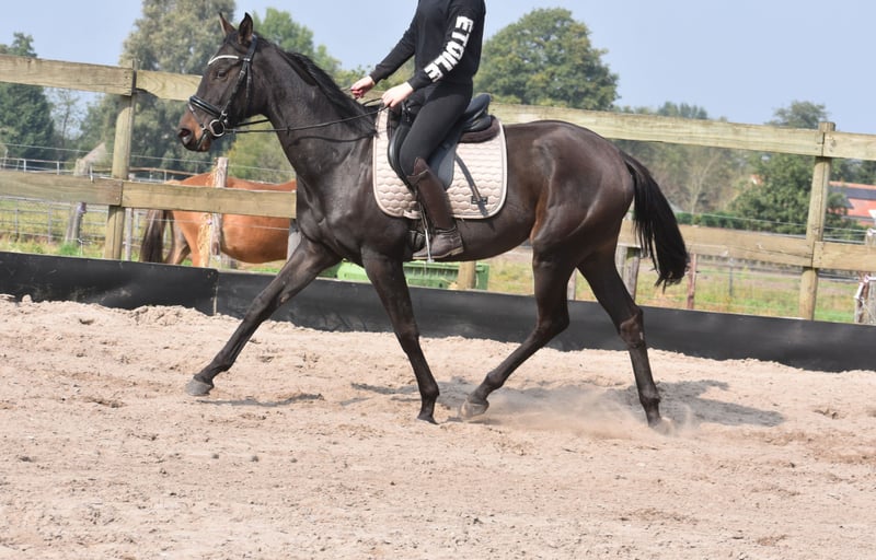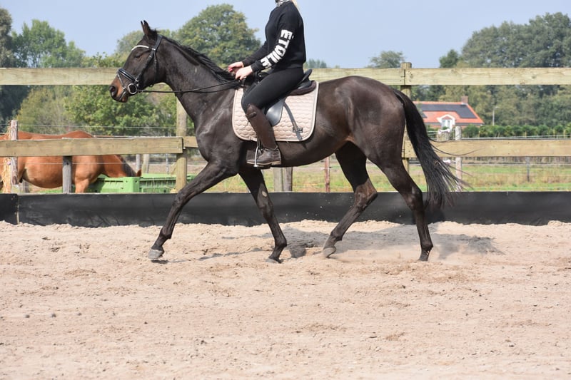 Maak kennis met Arya, een prachtige jonge merrie met een afstamming van Vocalised x Laughing Matter. Deze charmante dame weet met haar uitstraling en karakter direct een plekje in je hart te veroveren. Door haar volle stamboom en fijne karakter is ze ook interessant voor de fokkerij. Ze is ca 160 m hoog. Arya is hier ontzettend braaf en nuchter. Omdat ze jong is moet je wel rustig met haar opbouwen met voldoende rust, maar je kunt zo op haar gaan stappen. Ze is nieuwsgierig van aard en komt in de wei altijd even bij je kijken. Een echt mensen gericht paard! Een betrouwbare, werkwillige merrie met een gouden karakter én toekomstperspectief als je beste maatje. Geen bewegingswonder, op dit moment loopt ze op een kant niet helemaal ruim. Prijs: € 2450,-