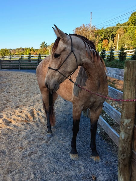 3yr old quarter horse draft cross. This beautiful buckskin is fresh out of her 60 days in training and is looking for her new home. She would be a great ranch riding prospect for someone. She turns on haunches, is a beautiful mover, side passes, will do flying lead changes just needs consistency, will collect, soft and supple, calm mind, hobble trained, and works the same outside of an arena. Very confident, willing, and good looking mare. She is solid, quiet and calm, walk, trot, canter, all on a loose rein in an arena or in a field. Stands at 15.1-2hh. Leads, loads, hauls, stands tied, UTD on farrier, vaccines, dewormer. 100% sound, PPE welcome. Contact at ↓↓ ◾423-930-6022 📍 Jonesborough TN