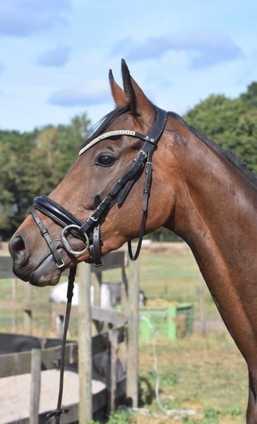 Well-behaved, nicely moving, large mare Here is Yvy, a stunning young lady of 3.5 years old, with a height at the withers of approximately 1.55 m (16.1 hh). She is by Doyen out of Little Nugget. She has a refined, elegant build and is sure to attract attention as soon as you enter the stables. She has a very sweet and honest appearance. Ivy has three fantastic gaits and is suitable for multiple disciplines. Despite her young age, Yvy handles work here very well. She enjoys working with her rider and makes every effort to understand everything as best as possible. Currently, she is being ridden dressage and recreationally, showing a good attitude and a lot of potential. She is completely sound and free of any issues. Recently treated by the dentist, with a recent report available. Price: €3,950 – including branded saddle and saddle pad Ivy is approved for recreational riding, including blood tests. For better results in the inspection, it would help if she wore shoes in front (sensitive soles).