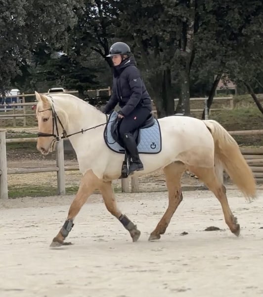 🔥 MARLEY DU MAS 🔥 ✨ 4 ans – OC – Robe crème 📍 Visible dans le Vaucluse Elle apprend vite et évolue à chaque séance. Une jument idéale pour un cavalier souhaitant construire son propre cheval et se faire plaisir avec une jeune prometteuse. Origines : UP’N DOWN DU TRESSON × BATIDA DE COCO DU MAS Taille : ~155 cm 🩺 Visite vétérinaire avec radio ✅