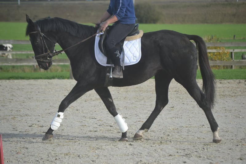 Cavalla femmina molto dolce, quasi 4 anni, alta 1,65 m. È calma e paziente nel rapporto, si monta e si mette in movimento senza problemi, e non si impressiona facilmente. È ben socializzata con il traffico e non presenta difetti. È buona dal ferratore e dal dentista. Per ulteriori informazioni o video, si prega di contattare direttamente via WhatsApp o telefono al 0031645719488.