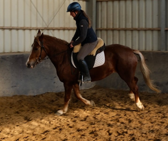 Bewegungsstarke,fleißige und sehr menschenbezogene kleine Warmblutstute. Geländereiten,Western,Schulbetrieb Sicher im Straßenverkehr und Gelände. 6 Jahre, 154cm Bei Interesse bitte anrufen, keine Mail! Für eventuell auftretende Fehler in der Beschreibung gilt keine Gewähr! Tel.: 0173-3843407 Da es sich um ein lebendes Tier handelt, sind dies subjektive Eindrücke des Anbieters und keine zugesicherten Eigenschaften des Tieres! Ständig schöne Fahr-u.Freizeitpferdesowie neue Kutschen verschiedener Modelle preiswert im Angebot. Anschrift Stall: 99628 Buttstädt, Oberwendenstraße 39