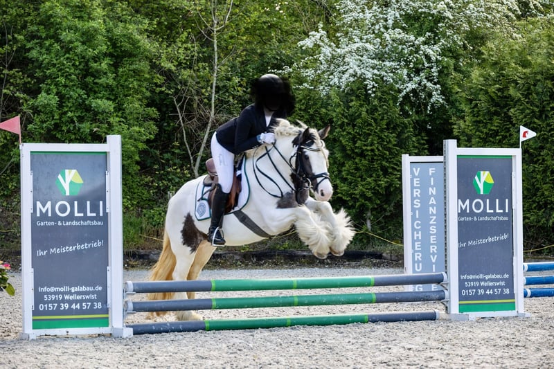 Wir verkaufen unsere Stute „Buttercups“, da sie dauerhaft nicht optimal für den Schulbetrieb geeignet ist. Wenn ein Anfänger das Gleichgewicht verliert / klemmt / sich am Zügel festhält, bekommt sie Angst und galoppiert an. Sie ist ein sehr freundliches Pony und möchte nichts verkehrt machen. Turniererfahrung in Reiterwettbewerb, Springreiterwettbewerb und Caprilli-Test (aktuell platziert!). Sie geht gut in der Abteilung und auch vorne / alleine. Kann ohne Sattel geritten werden, wird gerne draußen geritten, lässt sich brav putzen und führen, longiert wurde sie bei uns nicht. Zubehör kann mit kleinem Aufpreis dazu erworben werden. Bei uns schmiede- und verladefromm. Barhuf Seit Juli 2023 bei uns (aus Irland importiert), seitdem 3x jährlich entwurmt und Tetanus/Influenza geimpft. Sie lebt bei uns in einem kleinen Offenstall, aber auch Boxenhaltung ist problemlos möglich. Buttercups ist für Kinder und Jugendliche geeignet, die über eine entspannte Reitweise an den Tag legen. Angst des Reiters überträgt sich auf die Stute. Wurde bei uns von Kindern zwischen 9 und 17 geritten und gesprungen. Wir wünschen uns ein liebevolles Zuhause für dieses goldige Pony!