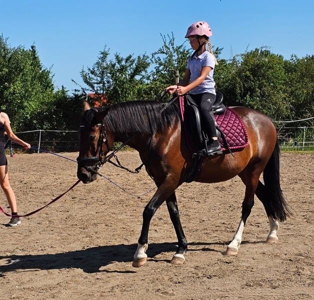 🌟 Expressive Pony Mare with Great Potential Seeking a Supportive 5-Star Home 🌟 It is with a heavy heart that I am looking for a new home for my 8-year-old pony mare, as I am unable to give her the attention and encouragement she deserves due to lack of time. Standing at 148 cm, she is a versatile, very trainable, and motivated mare who enjoys working and wants to continue developing her skills. She not only has a solid foundation but also impresses with her honest character and willingness to work. She handles children calmly and reliably in all gaits when worked with gently and fairly. Experienced riders also get along very well with her. As is typical for a mare, she can sometimes show a bit of independence when faced with unclear aids or demands that she is not yet confident in executing—however, she remains always manageable and never uncontrollable. Her training has so far included participation in WBO competitions. Flying changes have been introduced and ridden through but still need further reinforcement. Additionally, she has successfully completed courses for RA 5, dressage clinics, and the long-rein badge. She is familiar with trail riding and enjoys outings in the terrain, but she prefers to have a confident rider by her side. Due to her housing, an open stable would be ideal. Alternatively, she is accustomed to all types of housing; during winter, she should have sufficient free movement or be stabled at night with daily turnout, as she can become a bit tense if she doesn’t get enough exercise. Additional qualities: - Middle ranking in the herd - Loading-friendly - Farrier-friendly - No current health certificate available 📍 Location: near Magdeburg 💶 Price: €7,500 negotiable A loving home with horse experience, where she can be further supported and regularly worked with, is explicitly sought. Only to the best hands.