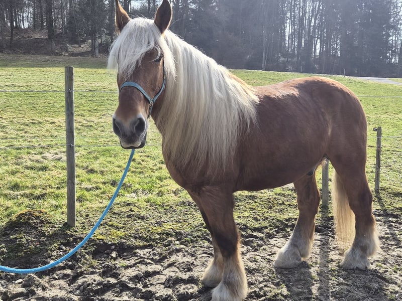 With a heavy heart, we are seeking a loving, calm, and countryside home for our beloved horse. He is a very sweet, handsome Trait Comtois gelding with a thick mane, fluffy winter coat, and shiny summer coat. A sturdy fellow with a sensitive nature, he tends to be quite laid-back in his movements. Ridden casually for leisure in English riding style. Barefoot, with hoof boots available. Approximate height: 16.1 hh, weight around 1,630 lbs. When we took over this Trait Comtois gelding five years ago, he was diagnosed with a respiratory infection and a unilateral laryngeal hemiplegia. We have treated him successfully, and since then, he has been healthy and full of life. He shows his gratitude and love wholeheartedly ♥️. The laryngeal hemiplegia only becomes noticeable during intense exertion, causing slightly labored breathing. Otherwise, he is unaffected. He enjoys trotting and cantering very much, but he also needs rest periods in a relaxed walk. As a precaution, we steamed his hay for a while, but the horses developed loose manure and fewer nutrients from the hay, so we stopped. The Comtois gelding has no issues with unsteamed hay. Like about 80% of all horses, he is an EHV carrier. With calm, friendly handling and companionship, there is no risk of an outbreak, and he is regularly vaccinated. We are looking for an experienced, kind person with a firm but gentle approach for this wonderful gelding. Loud, hectic people would not suit him. He is not suitable for beginners and benefits from experienced, sensitive handling and aids. Our horses are exclusively kept in a quiet, rural, sunny pasture with 24-hour turnout, frequent grazing, and soft bedding with retreat options. We wish for the Comtois gelding to find a similar home, in peaceful, friendly equine company. Stall confinement is out of the question for him. He has a passport, is regularly vaccinated against influenza and WNV, teeth are maintained, he is selectively dewormed, and the farrier comes regularly. Equipment for riding, training, fun, and grooming is available. Unfortunately, we can no longer give him the care he truly deserves. We look forward to hearing from you if you can offer our dear gelding a loving and peaceful home. We will not rehome him abroad.