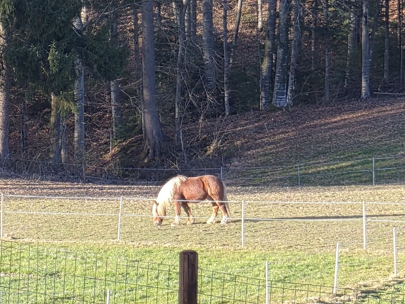 Aus persönlichen Gründen und schweren Herzens suchen wir ein schönes neues Zuhause für unser Herzenspferd. Ein lieber, schöner Trait Comtois Wallach, Jg. 2014. Ein stämmiges Kerlchen mit sensiblem Kern, eher gemütlich unterwegs. Englisch freizeitmässig geritten. Barhuf, Hufschuhe sind vorhanden. Stockmass ca. 163 cm. Als wir den Trait Comtois Wallach vor fünf Jahren übernommen haben, wurde bei ihm eine Atemwegsinfektion und eine einseitige Kehlkopflähmung diagnostiziert. Er wurde bei uns sorgsam kuriert, seither ist er gesund und lebensfroh. Er gibt seine ganze Dankbarkeit und Liebe dafür ♥️. Die Kehlkopflähmung macht sich nur bei starker Überbelastung durch etwas schwerere Atmung bemerkbar. Ansonsten ist er nicht beeinträchtigt. Er trabt und galoppiert sehr gern, nur braucht er halt auch Pausen in gemütlicherem Schritt. Ein Bedampfen des Heus ist nicht notwendig. Der Comtois Wallach hat mit unbedampftem Heu überhaupt kein Problem. Wie rund 80% aller Pferde ist er EHV-Träger. Es geht ihm super und wie wir seit 5 Jahren sehen, besteht in harmonischem Umfeld keinerlei Anlass, und er wird natürlich geimpft. Für den tollen Wallach suchen wir einen erfahrenen, lieben Menschen mit bestimmtem, aber ruhigem und feinem Umgang. Laute, hektische Menschen würden nicht zu ihm passen. Er ist kein Anfängerpferd und ist dankbar für erfahrene, feine Hände und Hilfen. Er mag Bodenarbeit und ist interessiert und lernfreudig. Unter einem sicheren, aufmerksamen Reiter geht er entspannt und kooperativ. Er lebt bei uns im Offenstall in ruhiger, ländlicher, sonniger Umgebung mit 24 Stunden riesigem Auslauf, Weidegang so oft wie möglich und Rückzugsmöglichkeiten. Er liegt sehr gern in weichem Einstreu. Wir wünschen uns für den Comtois Wallach ein ähnliches Zuhause zu zweit oder in freundlicher kleiner Wallach-Gruppe. Boxenhaltung kommt für ihn gar nicht in Frage. Er hat einen Pass, wird regelmässig gegen Influenza und WNV geimpft, die Zähne werden gemacht, er wird selektiv entwurmt, und auch der Hufpfleger kommt regelmässig. Zubehör zum Reiten, für Bodenarbeit sowie für die Pflege ist vorhanden. Wir können unserem Schatz leider nicht mehr so gerecht werden, wie er es verdient. Der Preis ist inklusive Zubehör und grosszügig verhandelbar - ein guter Platz bei lieben Menschen ist uns am wichtigsten ♥️. Wir freuen uns auf Ihren Kontakt, wenn Sie unserem lieben Wallach ein schönes Zuhause geben möchten und können. Wir geben ihn nicht ins Ausland.