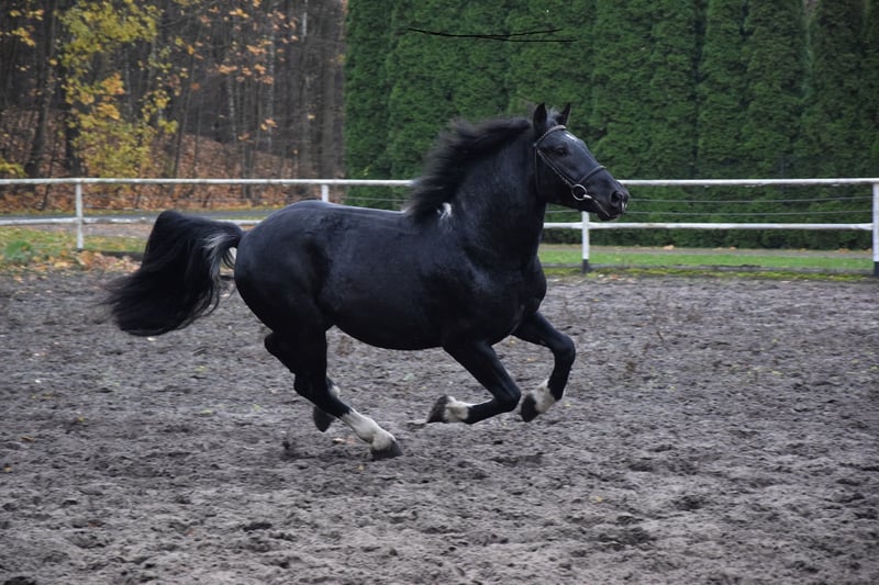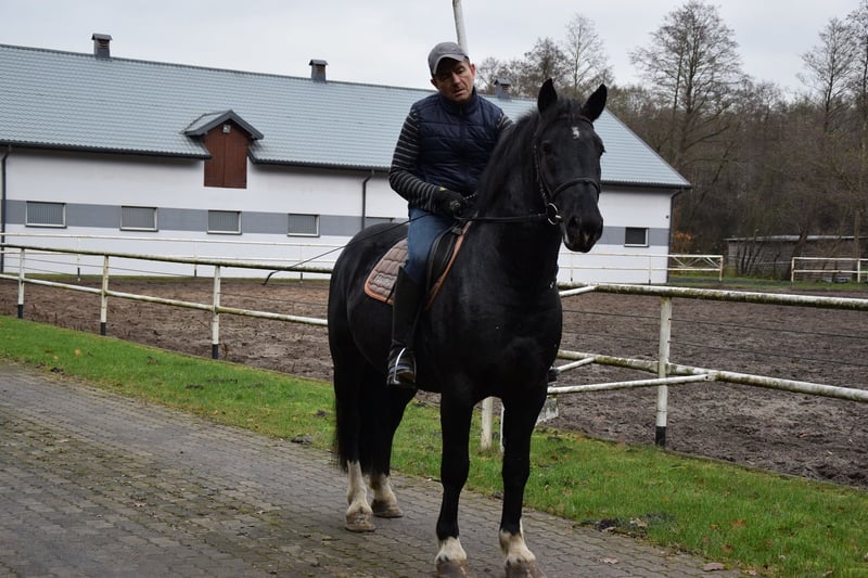 Dieser bildhübsche, lackschwarze Kaltblutmix (Vater: Kaltblut, Mutter: Warmblut) Wallach wurde 2021 geboren und misst aktuell 157 cm. Er besticht durch sein korrektes Gebäude, seine elegante Erscheinung und vor allem durch seinen besonders lieben Charakter. Menschen gegenüber zeigt er sich sehr zugewandt, freundlich, verspielt und aufgeschlossen. Trotz seines jungen Alters ist er bereits erstaunlich cool im Umgang und stets brav - sowohl beim Tierarzt als auch beim Hufschmied. Er wurde regelmäßig entwurmt. Besitzt einen Pass und ist mit verschiedenen Haltungsformen vertraut, darunter Boxenhaltung mit Weidegang sowie Herdenhaltung. Er befindet sich altersgerecht noch in der Entwicklung, wurde aber bereits spielerisch und mit viel Geduld angeritten. Unter dem Sattel zeigt er sich lernwillig, aufmerksam und vielseitig einsetzbar. Grot ist ganz bequiem und leicht zu sitzen. Lernt ganz schnell und ist focus am Arbeit. Schmied und Verladefromm. Mehr Infor gerne unter Whatsapp: +48784738028 Standort liegt in 86-200 Chelmno/Polen eine günstiger ist möglisch Weitere Bilder und Video steht unter unsere Internetseite: http://horseforsalepoland.weebly.com/grot.html
