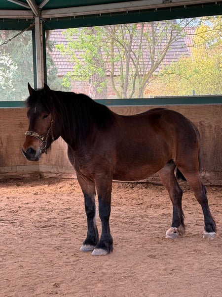 Zum Verkauf steht ein charmanter, fast 4-jähriger Kaltblut-Wallach mit einem aktuellen Stockmaß von 1,60 m. Dieser junge Mann ist ein interessanter Mix aus ungarischem Warmblut und Kaltblut, was ihm eine tolle Optik und eine angenehme Arbeitsbereitschaft verleiht. Ausbildungsstand & Training: Er wurde altersgemäß und schonend vorbereitet: • Longenarbeit: Er ist sicher an der Longe sowie Doppellonge in allen drei Grundgangarten gearbeitet (mit Kappzaum und Wassertrense). • Vorbereitung: Erste Erfahrungen in der Arbeit am Langzügel wurden bereits gesammelt. • Unter dem Sattel: Er kennt das Reitergewicht und wurde bereits im Schritt und etwas Trab angeritten. • Gelände: Er geht brav allein ins Gelände, aktuell noch als Handpferd. • Basis: Er ist fundiert in Bodenarbeit und Gelassenheitstraining geschult. • Er wird auch ein tolles Bild vor der Kutsche abgeben. Charakter & Alltag: Er ist ein liebes, herdenverträgliches und arbeitswilliges Pferd, das seinem Alter entsprechend sehr gut entwickelt ist. • Verkehrssicherheit: Autos sind gar kein Problem. Bei sehr großen Landmaschinen zeigt er sich aktuell noch etwas beeindruckt. • Umgang: Er ist brav beim Schmied sowie beim Tierarzt und hat bereits erste Trailerfahrten souverän gemeistert. • Haltung: Er ist an Offenstallhaltung gewöhnt, kennt aber auch die Box. Anforderungen an das neue Zuhause: Da er sich noch in der Ausbildung befindet, benötigt er eine konsequente Führung. Wir suchen daher jemanden mit Erfahrung im Umgang mit Kaltblütern, der ihn weiter fördert und ihm die nötige Sicherheit gibt. Platz vor Preis. Videos sind auch verfügbar