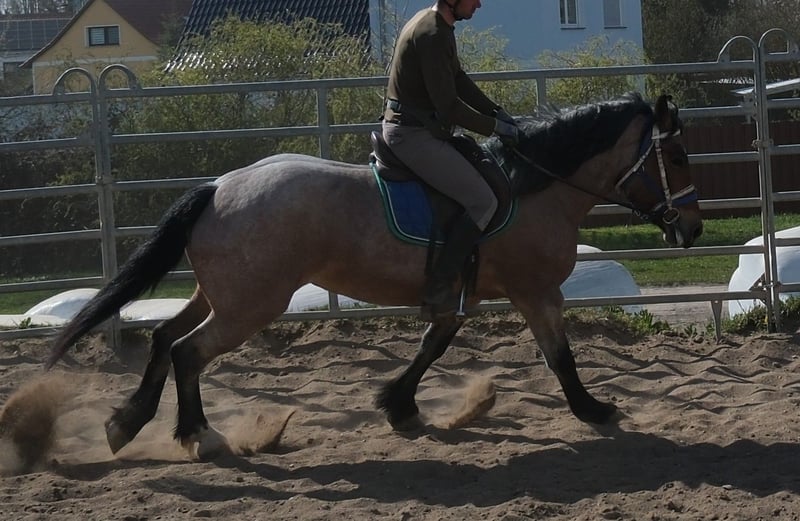 Schicke im modernen Typ stehende Kaltblutstute,fleißig bei der Arbeit und leichtrittig. Jagoda ist sehr gut in allen Gangarten auf dem Platz und in der Halle geritten. Weiterhin ist sie problemlos allein im Gelände und Straßenverkehr geritten. Geländereiten,Western,Schulbetrieb Sicher im Straßenverkehr und Gelände. 4 Jahre, 155cm Bei Interesse bitte anrufen, keine Mail! Für eventuell auftretende Fehler in der Beschreibung gilt keine Gewähr! Tel.: 0173-3843407 Da es sich um ein lebendes Tier handelt, sind dies subjektive Eindrücke des Anbieters und keine zugesicherten Eigenschaften des Tieres! Ständig schöne Fahr-u.Freizeitpferdesowie neue Kutschen verschiedener Modelle preiswert im Angebot. Anschrift Stall: 99628 Buttstädt, Oberwendenstraße 39