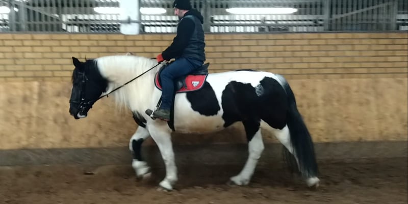 Bellana Kaltblutstute, Rappschecke, 8 Jahre, ca. 1,62 Stm., superschöne Kaltblutstute mit bestem Charakter, brav im Umgang, sehr gut gefahren in Kutsche und Planwagen und freizeitgeritten 5400,00 Euro 0171/3132074