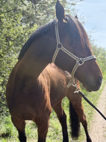 Ein Freizeitpartner mit viel Herz sucht ein liebevolles Zuhause für immer. Herbie ist ein 13-jähriger Traber-Wallach mit einem Stockmaß von ca. 165 cm. Ich habe ihn seit 4 Jahren, Privat hat sich jedoch einiges Geändert weshalb ich ihn leider abgeben muss. Er wird nur in beste Hände abgegeben !, ich wünsche mir für ihn einen Menschen, der ihn als zuverlässigen Freizeitpartner schätzt und ihm viel Aufmerksamkeit schenkt. Herbie steht momentan nicht 100% im Training, was bei regelmäßiger Arbeit jedoch problemlos wieder aufgebaut werden kann. Er kennt Longieren, Bodenarbeit, Reitplatz/Reithallenarbeit, Traktoren sowie entspannte Ausritte und schlittenfahren im Winter. Er ist Geländesicher sowohl alleine als auch in der Gruppe. Auch ohne Sattel lässt er sich reiten sowohl auf dem Platz als auch im Gelände. Unter dem Sattel ist Herbie kein typisches Anfängerpferd, da er einen konsequenten Reiter mit etwas Erfahrung benötigt. Im Umgang hingegen ist er ein echter Schatz: brav, ruhig, freundlich. Herbie versucht es einem immer Recht zumachen und zu gefallen. Er ist sehr lernwillig und lernt neue Dinge schnell und beherrscht den Spanischen Schritt vom boden aus aber auch noch viele weiter Tricks. Herbie sucht einen Menschen, der Lust auf Ausritte, Bodenarbeit und der mit seinem Pferd Spaß haben will. Er wird ausschließlich als Freizeitpferd abgegeben und nicht für den sportlichen Einsatz. Er wird mit Zubehör abgeben. Platz vor Preis! Wenn ihr Herbie kennenlernen wollt oder fragen habt dann schreibt mir einfach :)