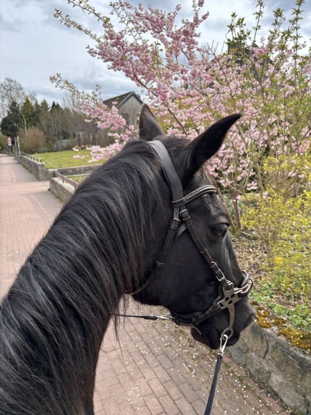Schweren Herzens muss ich mich aus persönlichen Gründen von meinem Wallach Amari trennen. Ich suche für ihn nun ein tolles neues Zuhause, in dem er alles bekommt, was er braucht. Mir ist wichtig, dass sein neuer Besitzer immer pro Pferd denkt. Amari ist ein dänischer Traber und war auch einige Zeit Rennen gelaufen. Bei mir ist er nun seit Anfang 2023 und zum Freizeitpferd umgeschult geworden. Er möchte gerne gefördert werden und arbeitet immer toll mit. Wir machen mit ihm leichte Dressur, Equikinetic, Bodenarbeit, Gelassenheitstrainig, Stangenarbeit, Spaziergänge und Ausritte. In der Halle ist Amari konzentrierter und einfach zu händeln, draußen ist er eher umweltorientiert und benötigt eine ruhige Bezugsperson, wenn er dort mal unruhig wird. Daher gebe ich ihn auch NICHT als Anfängerpferd ab. In der Herde ist er rangmittig bis ranghoch und leider nicht ganz einfach. Mit gleichrangigen oder ranghöheren funktioniert es besser als mit rangniedrigen, da er diese vom Futter vertreiben will. Er kennt offenstall und boxenhaltung. Kommt auch alleine im Stall gut zurecht. Er orientiert sich wenig an anderen Pferden. Schön wäre ein zuhause, dass nicht all zu weit weg ist, damit ich ihn mal besuchen kommen kann. Melde dich gerne, wenn ernsthaftes Interesse besteht, um Amari kennen zu lernen. Ps.: das letzte Bild zeigt Amari, wo ich ihn grade gekauft habe.