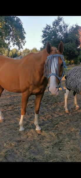 Hello, Unfortunately, due to health reasons, I must part with my beloved Spanish mix, Wallsch. It’s very difficult for me to write these lines, but I simply cannot continue to do him justice. He definitely needs: - A confident handler (preferably a woman). With men, he takes a bit longer to trust, but he gets along very well with my partner. - He is not a beginner’s horse, even though he was once a school horse. He definitely doesn’t want that role anymore. - No children’s horse, as he has a lot of go and temperament. - No riding schools, dealers, slaughterhouses, or similar. - The rider should be able to provide him with security, as he tends to mirror uncertainty. He is a very sensitive type, originally from Spain, where he had some less-than-ideal experiences. - He is fine to longe and ride on voice commands. - I have also ridden him bitless, but he has been standing for a while now and needs to rebuild muscle. He can jump, previously worked in a riding school, but he no longer wants that environment (the riding school). He started biting and kicking, but since coming to us, he has never shown that behavior again. He enjoys jumping, but needs some practice again. I don’t know how high he can jump; I’ve only jumped small obstacles with him. I wanted to try cross-country jumping with him, but that didn’t happen. He has also been on endurance rides, as he has a lot of go and enjoys galloping on grass. He must not be kept in a box, not even overnight. He starts weaving and is very unhappy if confined. He is out 24/7 with a small herd, with free access to hay, and is very content with that. He has never been ill, eats everything, is cheerful, learns quickly, and wants to learn. He is eager to work, which is why I am only selling him – I want to see if he misses that. In the coming years, I won’t be able to ride anymore (more personal details to follow). In summer or during very windy days, he needs fly fringes, as he is a bit sensitive (he pulls off masks easily, but he’s quite good at that). This year, it was manageable. I am working on removing his winter blanket, but if the weather gets too extreme, he will need one. However, he gets better each year. He is approximately 162 cm tall (to be re-measured). Born on September 26, 2011. He has Arab bloodlines. He holds a Spanish passport. He is a gelding with a heart of a true horse. He needs time to settle into his new home and build trust, which is common for most horses. A trial ride is not possible, as he is not yet muscled up, and a test sit is also not feasible. When you have him, he will do everything for you. He responds to voice commands. He has no intolerances, and the farrier comes every 6 weeks. He is currently barefoot but may need front shoes or hoof boots depending on workload and rides. NO URGENT SALE. This is the most important information for now. Accessories can be purchased separately if needed. The price is negotiable. Priority is given to a good home over price, but he will not be given away. No rent-to-own options or installment plans available.