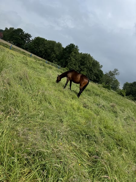 Ich biete hier meinen 3-jährigen englischen Vollblut-Wallach zum Verkauf an. • Abstammung: von Figari (& Mutter war ein Rennpferd) • Geschlecht: Wallach (kastriert) • Alter: 3 Jahre • Ausbildungsstand: angeritten • Gesundheit: regelmäßig geimpft und entwurmt Er bringt viel Potenzial mit und zeigt unter dem Sattel bereits gute Ansätze. Er ist gesund, korrekt gebaut und ein Pferd, das mit der richtigen Führung sicher ein toller Partner werden kann. Allerdings ist er kein Anfängerpferd: Er braucht eine konsequente, erfahrene Hand, da er in bestimmten Situationen Eigenheiten zeigt. Daher kommt für ihn nur jemand infrage, der Erfahrung mit jungen, charakterstarken Pferden hat und ihm die Zeit und Ausbildung geben kann, die er benötigt. Preisvorstellung: 3.800 € VB Kein Notverkauf, ich verkaufe ihn nur da ich meinem Pferd nicht die Hand geben kann die er braucht. Für