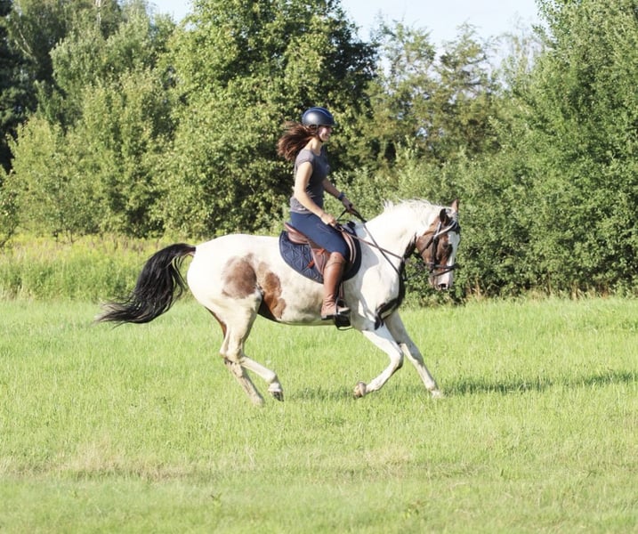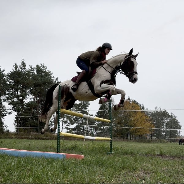 Na sprzedaż klacz Wielkopolska 5,5 roku. Klacz chodzi w trzech chodach i skacze pojedyncze przeszkody , do dalszej nauki, ma potencjał, nada sie na L/P w skokach przy odpowiednim treningu, z racji braku dobrego podłoża i hali skoki sporadycznie. U mnie głównie chodzi w tereny. Elektryczna lecz pod kontrolą, nie ponosi, w terenie idzie jako czołowa i w zastępie odnajduje się w obu formach . Nie nada się dla małego dziecka ani początkujących, na placu bardziej wymagająca, nada się do rekreacji pod osoby jedzące w trzech chodach. Jak to klacz miewa lepsze i gorsze dni ale jest łagodną dziewczyną , w stadzie na końcu hierarchii, u nas lepiej dogaduje się z wałachami bo klacze mamy zbyt dominujące. Dała dwa źrebaki , wzorowa mama, bezproblemowy poród. Cena 28 000 zł do negocjacji.