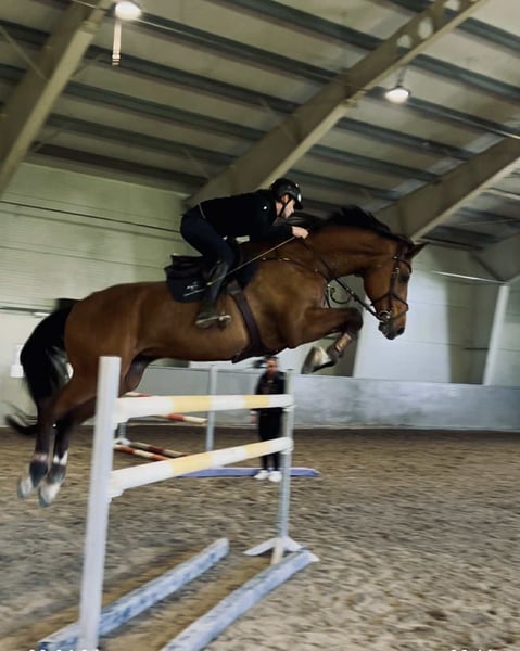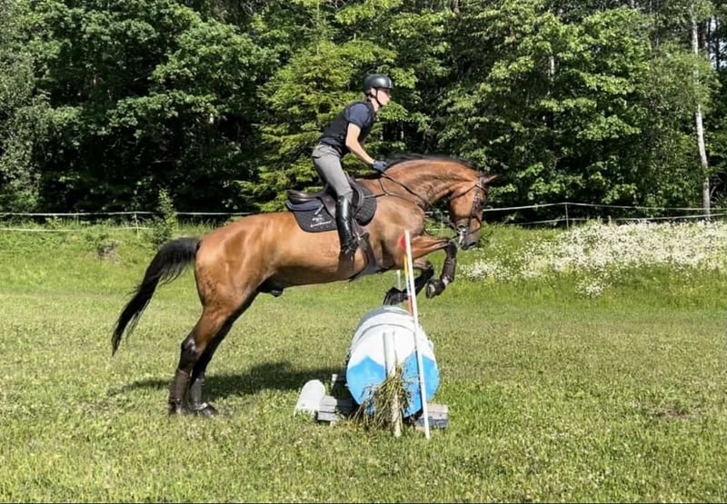HH Cezlando is looking for his new home – offered for sale with a heavy heart. Cezlando is a 14-year-old Norwegian Warmblood by Tobajo Picez. He has been bred, owned, and carefully looked after by us since day one, with regular farrier and veterinary care throughout his life. In showjumping, Cezlando is an experienced and reliable horse who has competed up to 130 cm. He will soon be ready to compete in 140cm. He has also done some eventing for variety in training, which he truly enjoys, having competed successfully at H80 level, and he easily jumps H100 at training. He has plenty more potential for someone looking for a capable and confident eventing partner. In dressage, he has competed up to LA level and performs all medium-level movements at home. Cezlando has three good gaits, enjoys his work, and always approaches new tasks with a positive attitude. Although he is a large horse, he is sensitive and light to ride, and works best with a rider who has a soft hand and seat. He is brave and sensible, and he forgives rider mistakes — he simply keeps going and tries his best. Due to the owner’s personal focus, he has been lightly competed but well-schooled at home, and he still has much more to give in the competition arena in all disciplines. Recently, he has been trained and competed by Vetle Solenes. Cezlando is an easy and uncomplicated horse — good to travel with, traffic-safe, and enjoys hacking both alone and in company. Price range: Medium to high. 📞 Please contact us for a pleasant chat: +47 979 45 085 The right home is very important to us, and we reserve the right to choose the buyer.