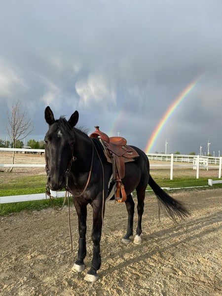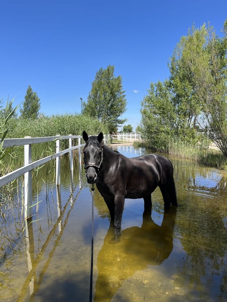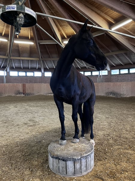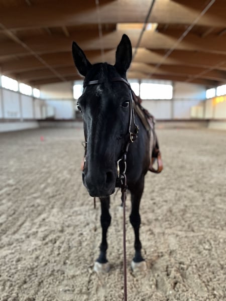 Auch wenn es mir nicht leicht fällt, habe ich mich dazu entschieden, für meinen Hugo ein neues Zuhause zu suchen, in dem er weiterhin ein schönes und passendes Leben führen darf. Zu Hugo: * Geboren: 03.05.2011 * Ca. 158 cm groß * Ungarisches Warmblut / Araber * Rappe/Braun Hugo ist ein unglaublich lieber und ehrlicher Kerl im Umgang. Er ist menschenbezogen, macht alles brav mit und zeigt sich im Alltag von seiner besten Seite. Aktuell steht er im Offenstall mit zwei Stuten, was sehr gut funktioniert. In der Herde ist er eher ranghoch bis mittig, aber dabei nie unfair oder böse zu anderen Pferden. Ausbildung & Arbeit: ——————————— Hugo wurde ursprünglich englisch ausgebildet, ich habe ihn dann auf Western umgestellt und reite ihn freizeitmäßig und genau das macht ihm auch am meisten Spaß. Er ist kein Anfängerpferd, sondern braucht einen erfahrenen, sicheren Reiter, der weiß, was er tut und ihm klare Hilfen geben kann. Wir haben früher sehr gerne Trail gemacht, das kennt er gut, ist aber aktuell etwas aus der Übung. Bodenarbeit, Longieren und Zirkuslektionen macht er sehr brav mit. Er kann z. B. den spanischen Gruß, wir haben mit dem spanischen Schritt begonnen (noch nicht ganz gefestigt), außerdem „Lachen“ und „Bussi geben“. Gelände & Transport: ——————————— Ins Gelände geht er sehr gerne, sowohl alleine als auch in der Gruppe. Wasserüberquerungen und Schwimmen kennt er. Beim Hängerfahren ist es so, dass er aktuell nicht einfach selbstständig einsteigt. Mit Ruhe, Geduld und seitlicher Begrenzung kann es klappen, ansonsten kann man ihn auch sedieren. Das sollte man ggf. mit einem Trainer weiter üben, da er früher problemlos frei eingestiegen ist. Gesundheit: ——————— Hugo ist regelmäßig geimpft und die Zähne wurden immer gemacht. Der Schmied kommt alle 6 Wochen, aktuell ist er vorne beschlagen, hinten wäre auch möglich. Er ist brav beim Schmied. Er hat einige Zufallsbefunde, die ihn nicht einschränken und bei denen er nie Schmerzen gezeigt hat: * Hufrollensyndrom vorne (einmal behandelt, seitdem beschwerdefrei) * Geringgradige Osteoarthrose im Krongelenk (rechtes Vorderbein) * Geringgradige Hufgelenksarthrose (rechtes Vorderbein) * Geringgradige Hufknorpelverknöcherung (rechtes Vorderbein) Diese wurden vor einigen Jahren festgestellt und sind seitdem unauffällig. Fütterung: —————— Er ist eher leichtfuttrig. Bei 24/7 Heu und zu wenig Bewegung nimmt er schnell zu. Mit ausreichend Training und passender Heuqualität ist Offenstall mit Dauerheu aber möglich. Aktuell bekommt er 2x täglich Heu sowie Kraftfutter. Wunschplatz: ———————— Ich wünsche mir für Hugo einen liebevollen Endplatz in Offenstallhaltung mit Herdenanschluss. Das ist für ihn einfach die beste Haltungsform. Eine reine Boxenhaltung mit wenig Auslauf kommt für mich nicht infrage. Sonstiges: —————— * Keine Unarten wie Bocken oder Steigen * Probereiten möglich (30 €, wird beim Kauf gegengerechnet ) * Zubehör kann gerne erworben werden * Pferdepass vorhanden Mir ist besonders wichtig, dass Hugo einen Platz bekommt, an dem er weiterhin gut umsorgt wird, regelmäßige Bewegung bekommt und einfach Pferd sein darf. Bei ernsthaftem Interesse freue ich mich über eine Nachricht.