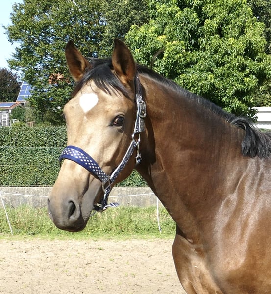 Hij is gewoon een droom! Morgenstern, een 3-jarige buckskin ruin van Michelangelo x Ismo x Polany x Direx. Prachtig uiterlijk, krachtig in beweging, en qua afstamming zeer interessant voor veelzijdigheid en springen!